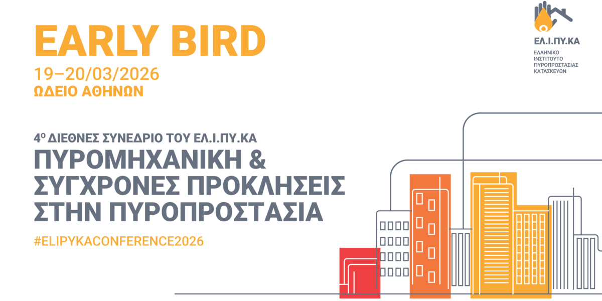 Η Επιτροπή Συνέδριου ΕΛ.Ι.ΠΥ.ΚΑ σάς ενημερώνει ότι πλέον είναι διαθέσιμα τα Early Bird εισιτήρια για το 4ο Διεθνές Συνέδριο του ΕΛΙΠΥΚΑ, με γενικό τίτλο: «Πυρομηχανική & Σύγχρονες Προκλήσεις στην Πυροπροστασία», που θα πραγματοποιηθεί στις 19–20 Μαρτίου 2026, στο Ωδείο Αθηνών.