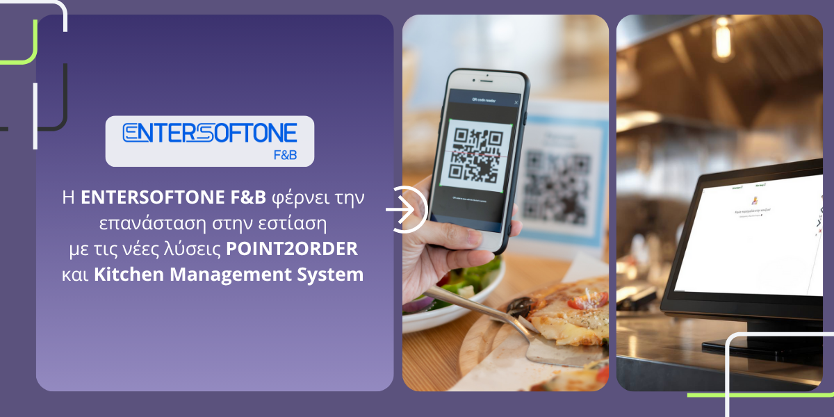 Η Entersoftone F&B φέρνει τον κλάδο HO.RE.CA. στη νέα ψηφιακή εποχή, παρουσιάζοντας δύο νέες καινοτόμες εφαρμογές, το POINT2ORDER και το Kitchen Management System. Αξιοποιώντας τεχνολογία αιχμής, οι δύο λύσεις ενισχύουν την αποδοτικότητα, αναβαθμίζουν την εμπειρία του πελάτη και συμβάλλουν στον ψηφιακό μετασχηματισμό της εστίασης, μειώνοντας τα λειτουργικά κόστη και το περιβαλλοντικό αποτύπωμα.