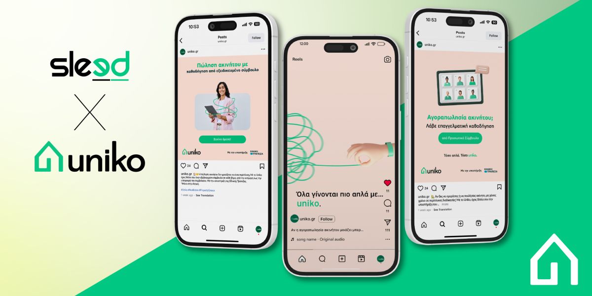 Η Sleed αναλαμβάνει την ψηφιακή στρατηγική και δημιουργική υποστήριξη του Uniko, του νέου brand στον κλάδο της διαχείρισης ακινήτων και υπηρεσιών real estate. Η συνεργασία στοχεύει στην ενίσχυση της αναγνωρισιμότητας ενός φρέσκου brand στην αγορά του real estate, ενώ ταυτόχρονα θέτει στο επίκεντρο μετρήσιμα αποτελέσματα, τόσο για την προσέλκυση πωλητών όσο και δυνητικών αγοραστών. Η ομάδα της Sleed αναλαμβάνει τον στρατηγικό σχεδιασμό της digital παρουσίας του Uniko, παρέχοντας συμβουλευτικές υπηρεσίες στρατηγικής, υλοποιώντας στοχευμένες performance καμπάνιες και σχεδιάζοντας data-driven δημιουργικά που ενισχύουν την αποδοτικότητα του brand.