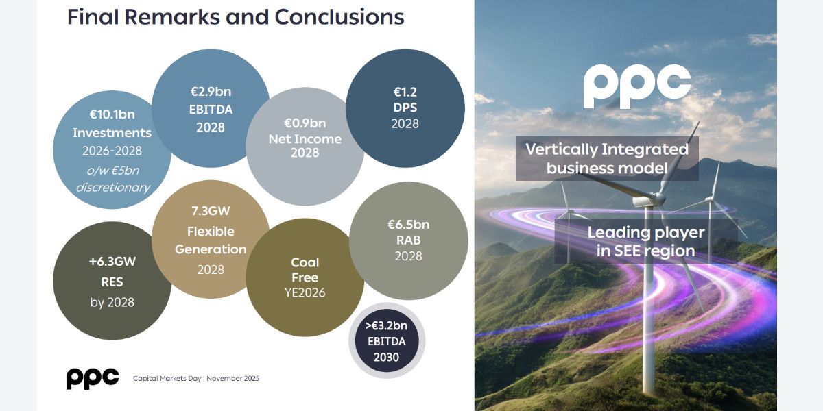 Το ισχυρά αναπτυξιακό και επικαιροποιημένο στρατηγικό σχέδιο του Ομίλου ΔΕΗ για την τριετία 2026-2028 παρουσίασε στο Λονδίνο η διοίκηση της εταιρείας, με όραμα να ηγηθεί της ενεργειακής μετάβασης στη Νοτιοανατολική Ευρώπη, στη νέα εποχή της σύγκλισης ενέργειας και τεχνολογίας. Το πλάνο της επόμενης τριετίας βασίζεται στο επιτυχημένο καθετοποιημένο μοντέλο του Ομίλου και έχει στο επίκεντρο επενδύσεις 10,1 δισ. ευρώ για την ανάπτυξη ανανεώσιμων πηγών ενέργειας και μονάδων ευέλικτης ισχύος, την επέκταση και τον εκσυγχρονισμό των δικτύων και τις πελατοκεντρικές υπηρεσίες, στην ευρύτερη περιοχή της Νοτιοανατολικής Ευρώπης, με την αξιοποίηση της τεχνητής νοημοσύνης σε όλες τις λειτουργίες του Ομίλου. Η αναπτυξιακή προοπτική του στρατηγικού πλάνου του ομίλου ΔΕΗ θα οδηγήσει σε EBITDA πάνω από 2,9 δισ. ευρώ το 2028.