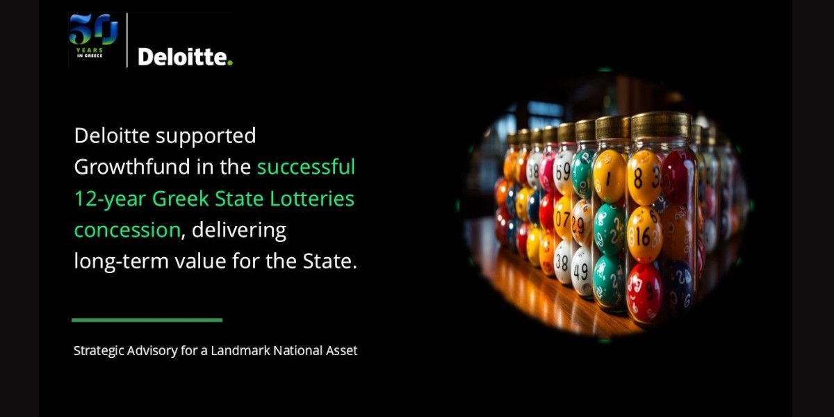 Ολοκληρώθηκε με επιτυχία η διαγωνιστική διαδικασία για την παραχώρηση του αποκλειστικού δικαιώματος λειτουργίας των Κρατικών Λαχείων για τα επόμενα 12 χρόνια, με την Deloitte να διαδραματίζει κομβικό ρόλο ως Χρηματοοικονομικός Σύμβουλος του Growthfund, the National Fund of Greece. Η διαδικασία κατέληξε στην επιλογή της OPAP Investment Limited ως Προτιμητέου Επενδυτή, κατόπιν αποδοχής βελτιωμένης οικονομικής προσφοράς. Η παραχώρηση αυτή αποτελεί μια στρατηγική συναλλαγή με μακροπρόθεσμο οικονομικό και κοινωνικό αποτύπωμα. Η παραχώρηση περιλαμβάνει: