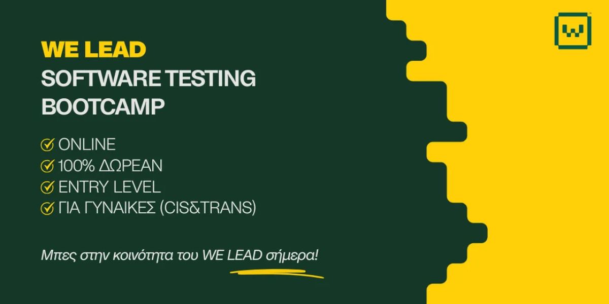 Το WE LEAD ανακοινώνει ένα νέο, δωρεάν και εξ ολοκλήρου online Bootcamp στο Software Testing. Το πρόγραμμα σχεδιάστηκε σε συνεργασία με την Code.Hub και απευθύνεται αποκλειστικά σε γυναίκες (σις και τρανς) ηλικίας 18 ετών και άνω, με βασικές γνώσεις υπολογιστών ή προγραμματισμού. Αφορά όσες ενδιαφέρονται να ξεκινήσουν καριέρα στην τεχνολογία, να ενισχύσουν τις δεξιότητές τους ή να επιστρέψουν στην αγορά εργασίας μετά από επαγγελματική διακοπή.